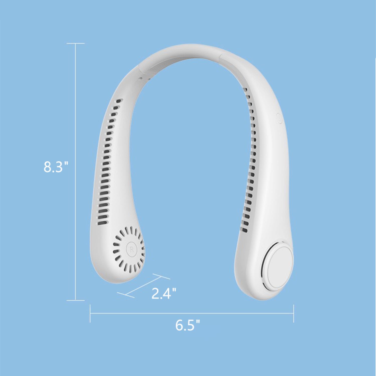 Stay cool anywhere with this bladeless, hands-free neck fan! Shaped like headphones and made of ABS and soft silicone, its ultra-light, flexible, and safe for kids and seniors. With 3 wind speeds, a quiet dual-turbine motor, 1200mAh rechargeable battery, and USB fast charging, its perfect for travel, sports, or outdoor work. No hair tangling, no neck strainjust powerful, quiet airflow. A stylish, practical gift for anyone in hot weather! 6.5″ L x 8.3″ W x 2.4″ H