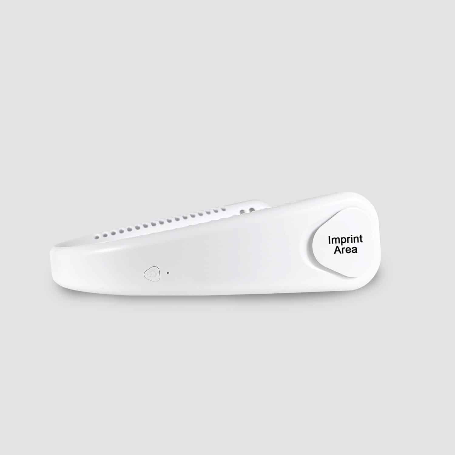 Chill out in seconds with the Cool Breeze! This bladeless hanging neck fan is ideal for the gym, office, on a walk or just hanging out at home. It’s composed of ABS material and has 3 fan speeds. When fully charged, it provides 3 hours of soothing, cool air on low speed. A must-have for hiking or an outdoor event! The flexible design curves around your neck for a comfortable fit. The Cool Breeze makes a nice employee or new hire gift. Imprint your logo on the fan to maximize your brand exposure!Battery Capacity: 1200mAhCharging Port: USB charging portWeight: 0.50 lbsCooling times:High Speed – 40 minutesMedium Speed – 1.5 hoursLow Speed – 3 hours. Complies with CE, FCC, Prop 65, RoHS, UN38.3. 7.3″ H x 8.0″ W x 2.3″ D