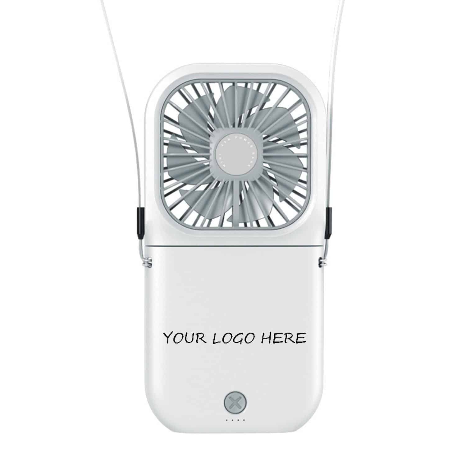 This fan has an ultra-quiet design and comes with a control switch. The motor is made by DC brushless technique and offers lower power. You can put on the desk, hold it to your neck, and you can adjust to any direction you need. Long lasting even with continuous use. Great items to boost your brand in hot summer! 6 3/8″ L x 3″ W x 1/2″ Thick