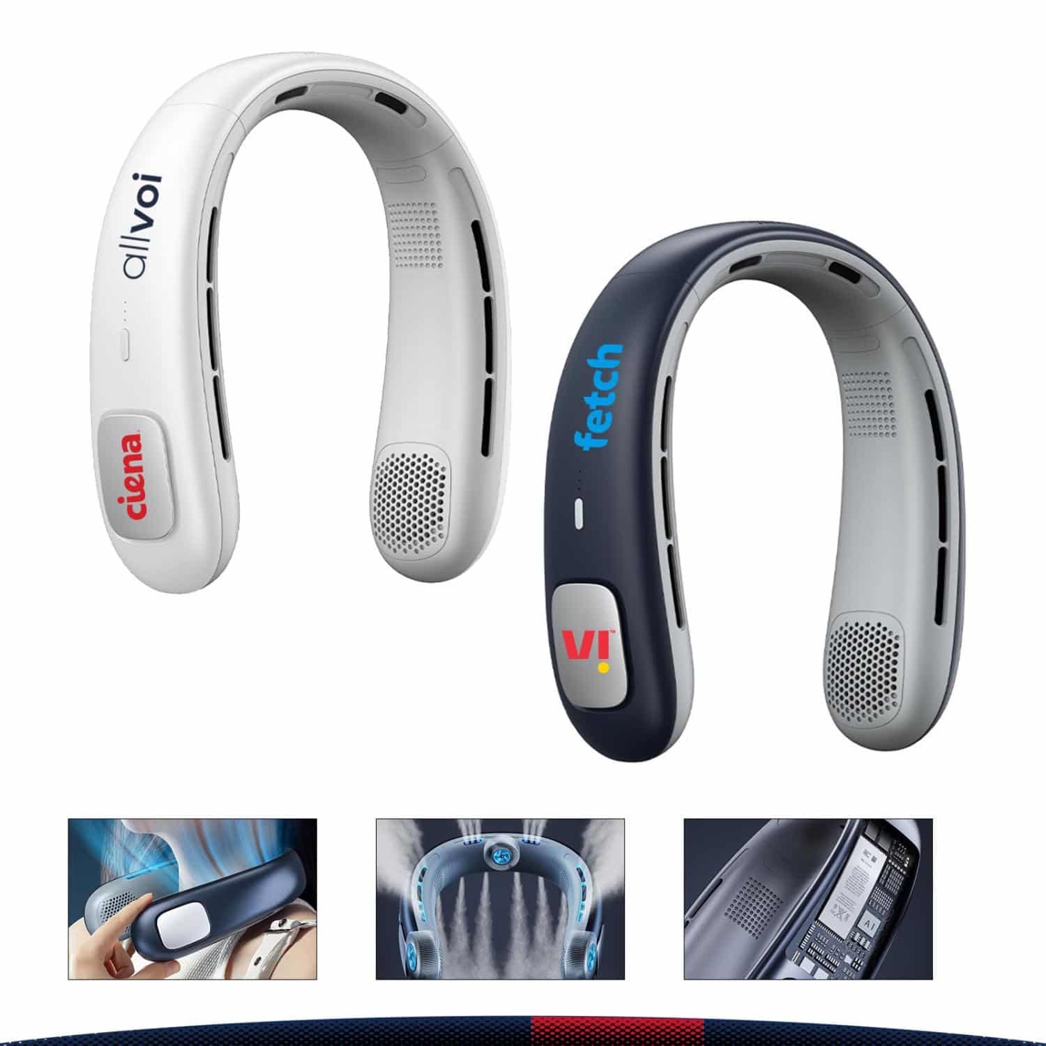 Crafted from ABS and PP materials for durability and ergonomics, it is comfortable to wear without the hassle of tangled hair. Powered by 1800mAh rechargeable battery and features a Type-C charging port (charging cable included) that ensures a full charge in 3 hours and a lasting cool of 2 to 5 hours. Adjust the airflow to your preference with three speed settings at the touch of a button. Customize it with your brand on the blank logo space. Perfect for travel, sports, or daily tasks. 8.19″ H x 7.76″ W x 2.4″ D