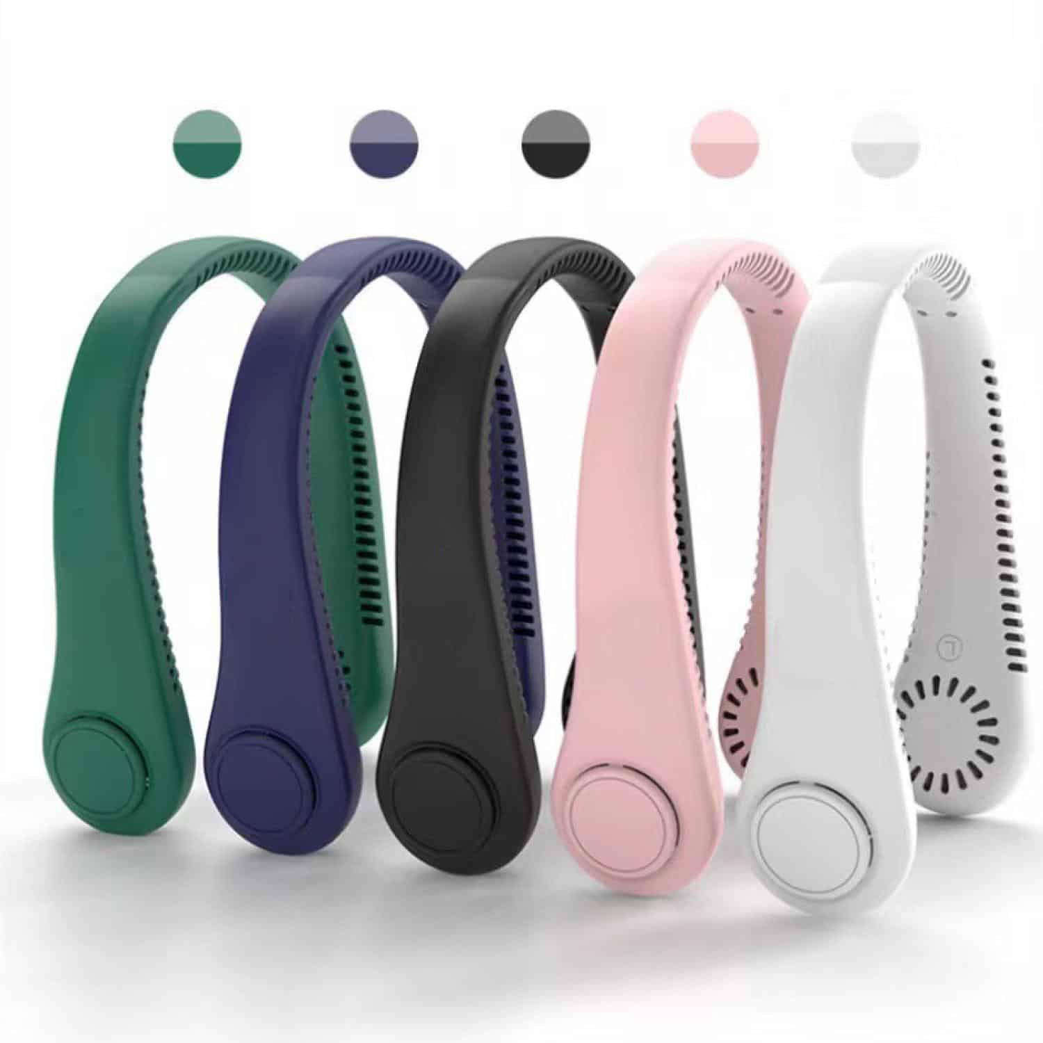 Crafted from eco-conscious ABS and soft silicone, this portable neck fan features a hair-safe bladeless design. With three speed settings, its 1200mAh battery recharges via USB to deliver over 3-6 hours of cool, powerful breeze. Its innovative 62 air outlets and adjustable wind directions make it the perfect companion for indoor and outdoor adventures. 8.27″ L x 5.91″ W x 2.36″ H