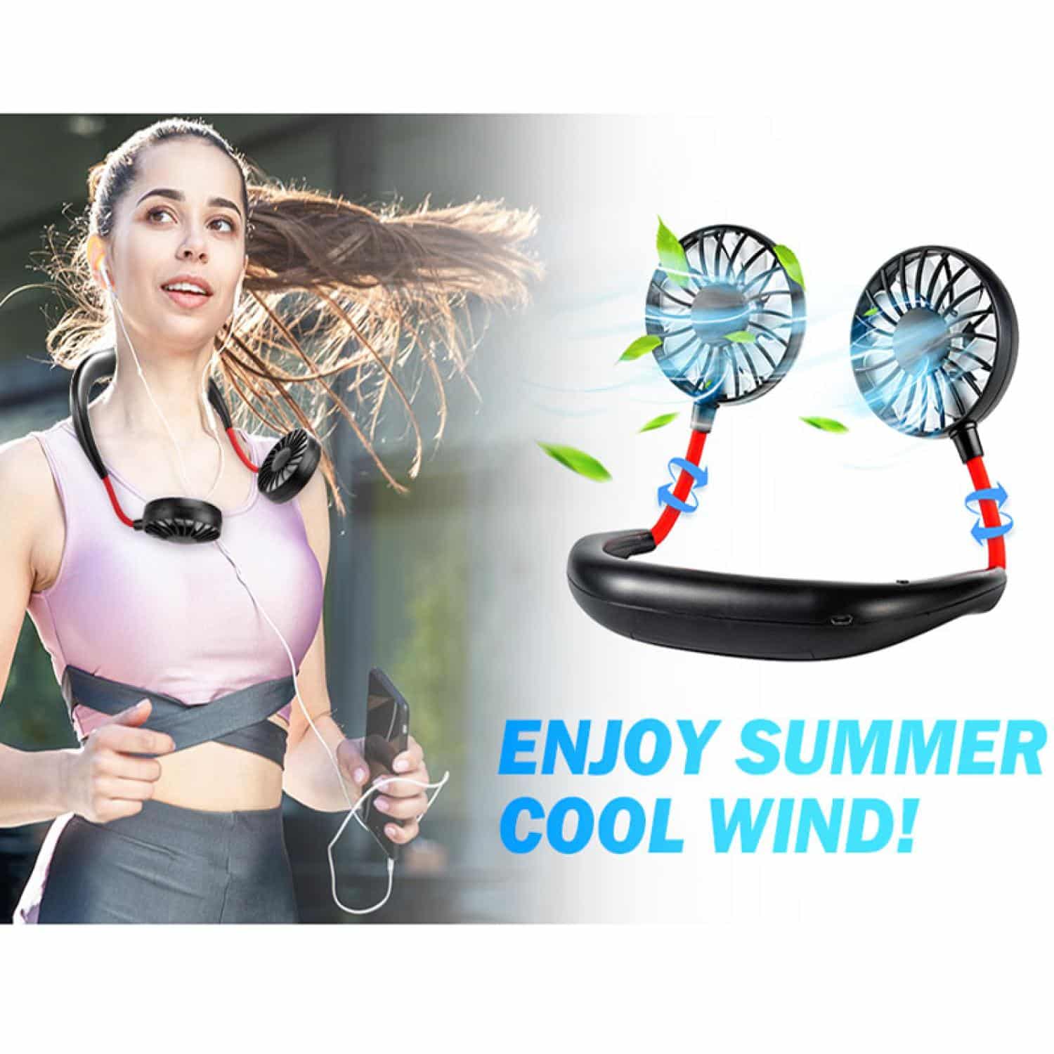 This portable USB rechargeable fan made of eco-friendly ABS and silicone. Features a 360 degree rotating design, freely adjustable wind direction, 3 adjustable speed level to keep you cool in the summer. Unique seven fan blade design with neck band keeps the hands free. Softer and more durable. It can also be used as a handheld fan or be placed on the table as a desktop fan. Add your logo on it. 7″ W x 10 1/4″ L
